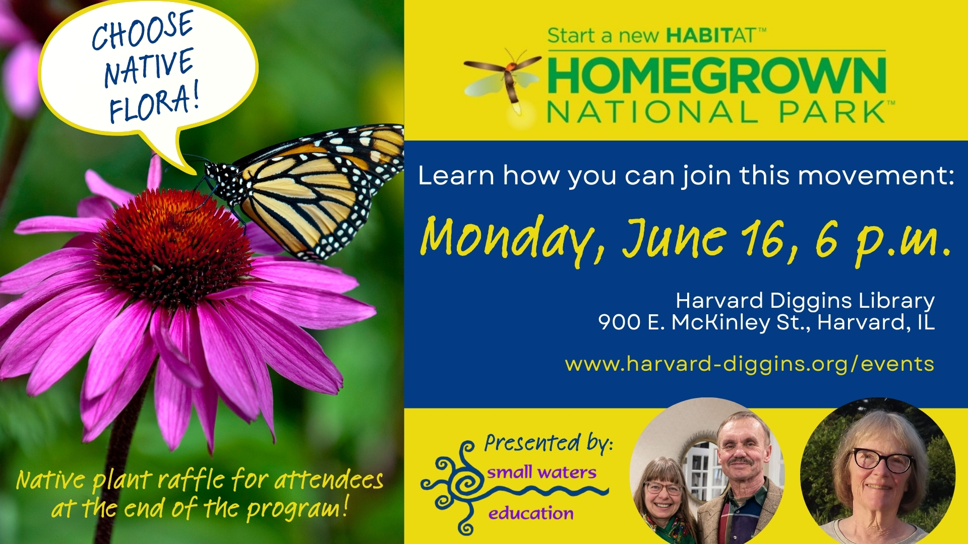 Did you know planting native flora and removing invasive species can make you a part of the Homegrown National Park movement? On Monday, June 16, at 6 p.m., learn about this nationwide call-to-action with a short film, “What’s the Rush?” by renowned conservationist Doug Tallamy. A presentation and Q&A will follow with a local pollinator expert from one of the many McHenry County conservation organizations co-sponsoring this event at regional libraries during Pollinator Week, June 16-22. Attendees can enter a native plant raffle at the end. This event is free and open to the public; no library card needed. Registration is required. RSVP by filling out the form below.